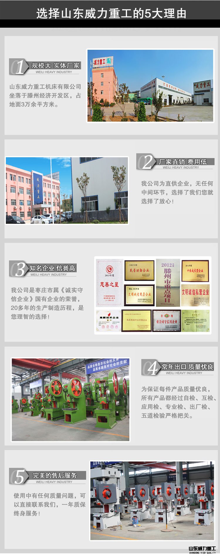 近年來,山東沖床廠家山東威力重工機床有限公司緊隨時代發展趨勢,產品全線升級常年出口國外,目前,山東沖床廠家已經在技術上具備了與國外企業比肩的水平,甚至其產品出口和市場份額已經超過了一些國外品牌,唯一的差距只是品牌價值之間的差距,而這樣的差距是需要時間和歷史去奠定的。但國內產品具備更高的性價比,這也是毋庸置疑的,也是山東沖床廠家最為倚重的競爭優勢之一。