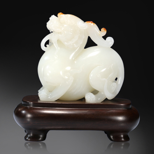 顏色潔白,質(zhì)地細(xì)膩,油潤(rùn)度極佳,手感溫潤(rùn)順滑,圓雕一貔貅,兩眼圓睜,口張吐舌,頭部有紅糖,色俏麗喜人,瑰艷奪目,有鴻運(yùn)當(dāng)頭之意此件雕刻精細(xì),姿態(tài)寫意,簡(jiǎn)約流暢,惟妙惟肖。